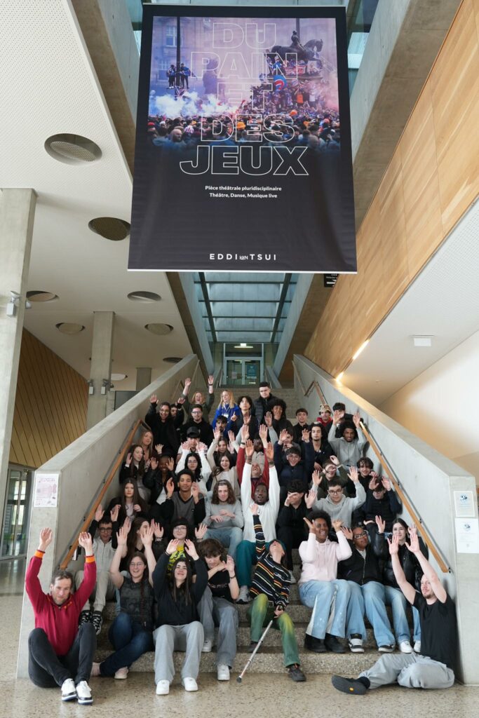 Du Pain et des Jeux a permis aux élèves d’explorer des thématiques complexes – passion, compétition, collectif, exclusion, pression sociale – en les liant à leur propre réalité. En croisant les disciplines, le collectif Eddi van Tsui a ouvert un espace de création exigeant, sensible et profondément humain, dans lequel les jeunes ont pu s’exprimer, collaborer et prendre confiance.
